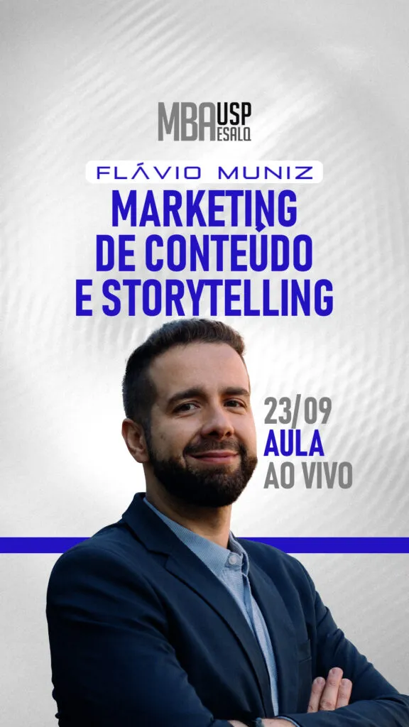 Um dos grandes pilares de Flávio Muniz no MBA USP ESALQ é mostrar como o Storytelling e o Marketing de Conteúdo podem se tornar motores de vendas e diferenciação de mercado. O professor ensina que, em um mundo saturado de informações, as empresas que conseguem contar boas histórias são as que mais conquistam clientes fiéis.